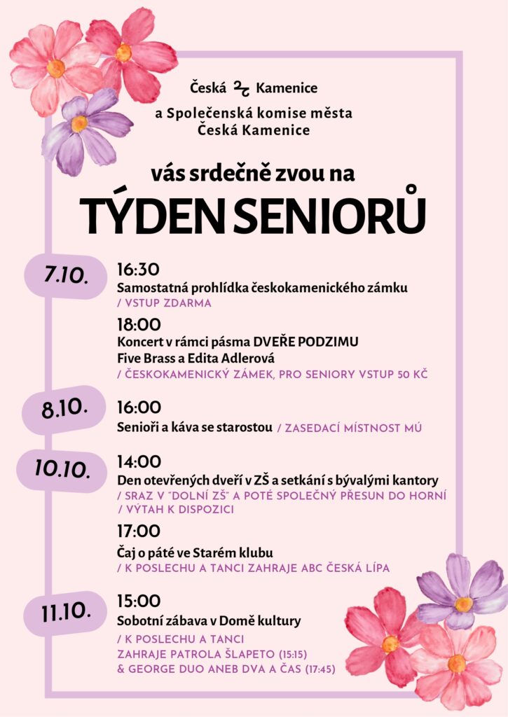Zveme Vás od 7.10 do 11.10. 2025 na Týden Seniorů.