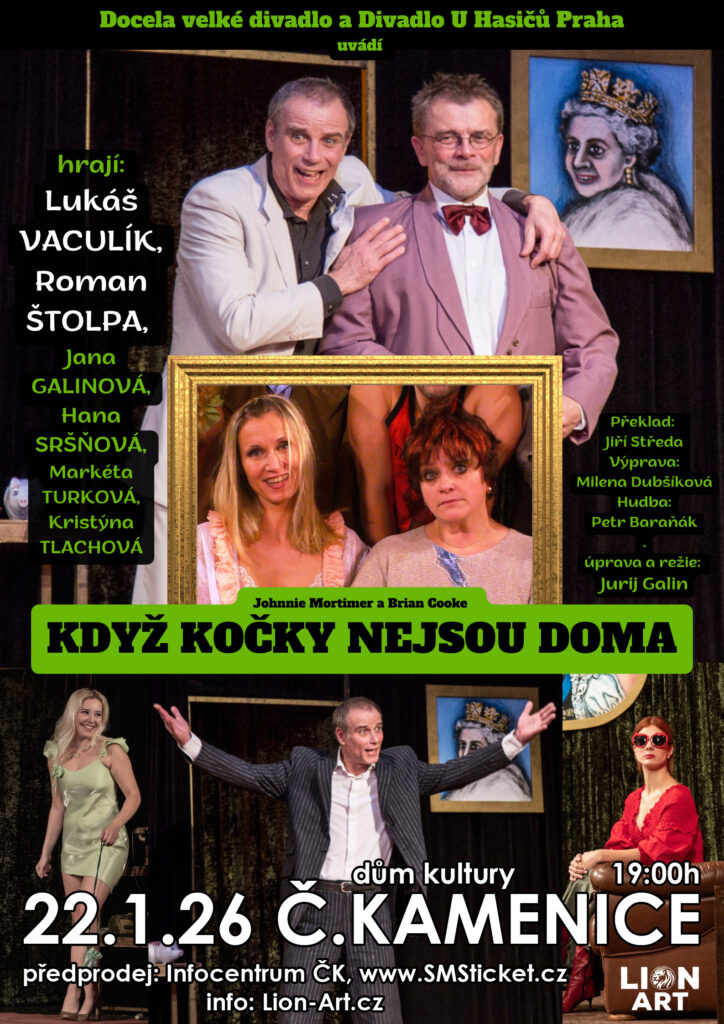 Lion Art a Město Česká Kamenice vás zvou 22. ledna od 19:00 do DK na divadlo Když kočky nejsou doma.