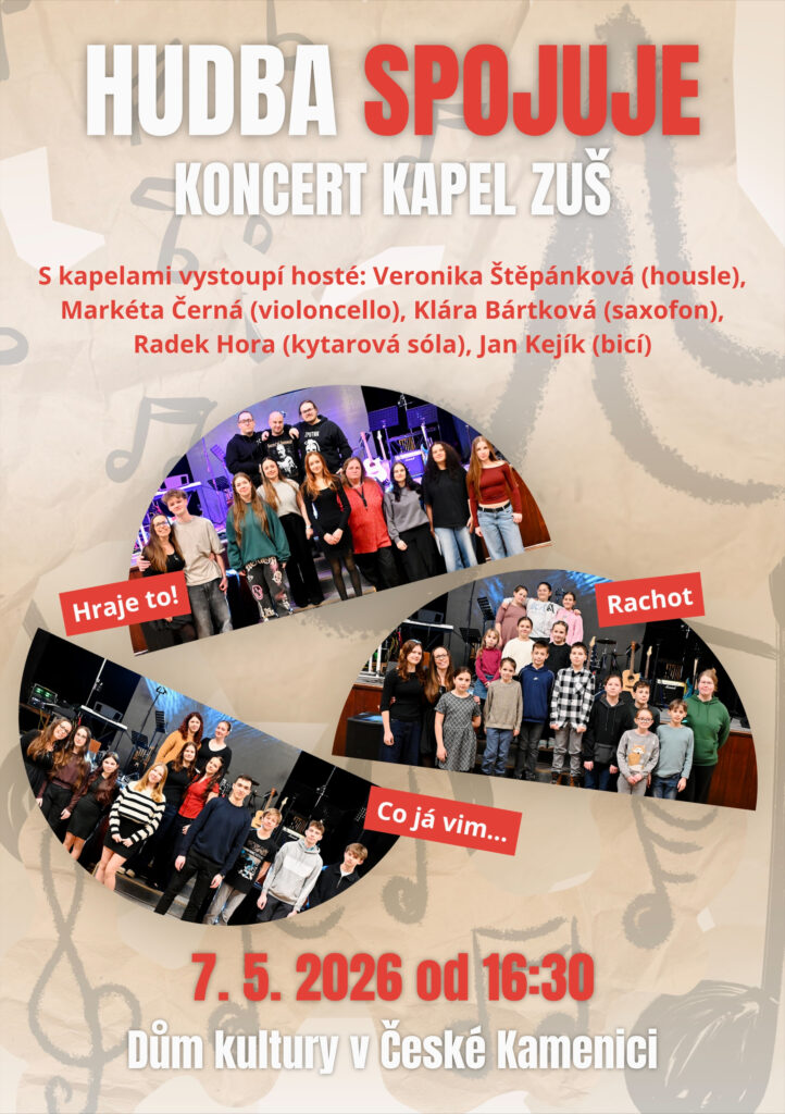 ZUŠ Česká Kamenice vás zve 7.5.2026 od 16:30 v DK na koncert svých kapel.