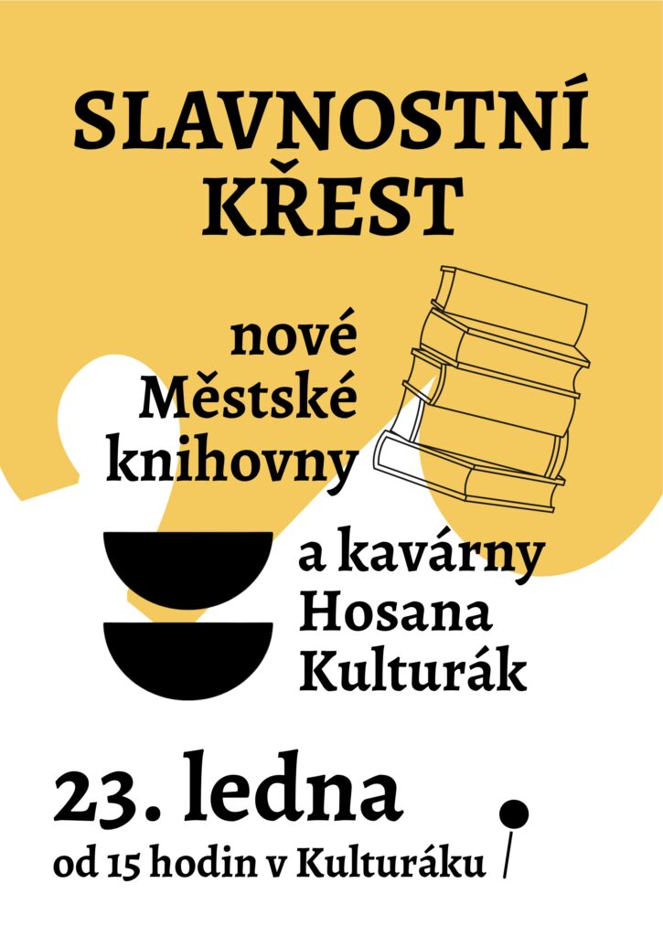 Zveme vás 23.1. od 15:00 do DK na slavtnostní křest nové Městské knihovny a kavárny Hosana Kulturák.