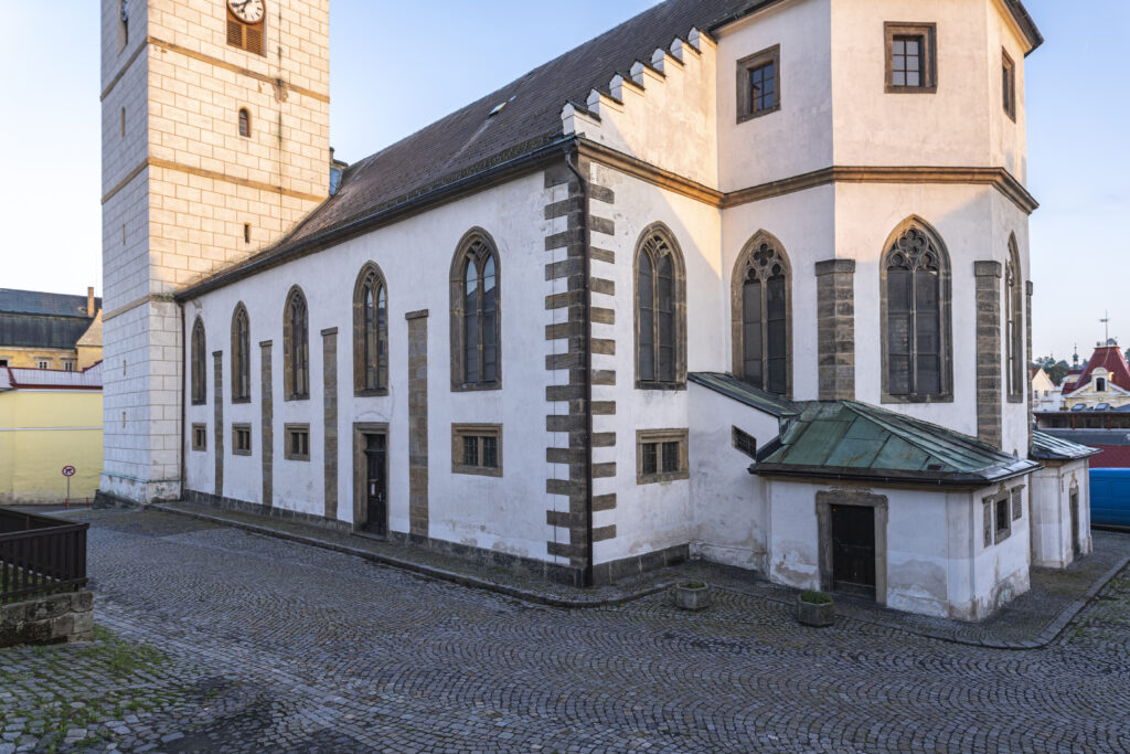 První zmínka o gotickém kostele pochází již ze 14. století, původní stavba však byla v následujícím století vypálena a na jejích základech vyrostl později kostel nový. Dnes se uvnitř něj v gotickém trojlodí mísí rokoko, renesanční a klasicistní prvky.
